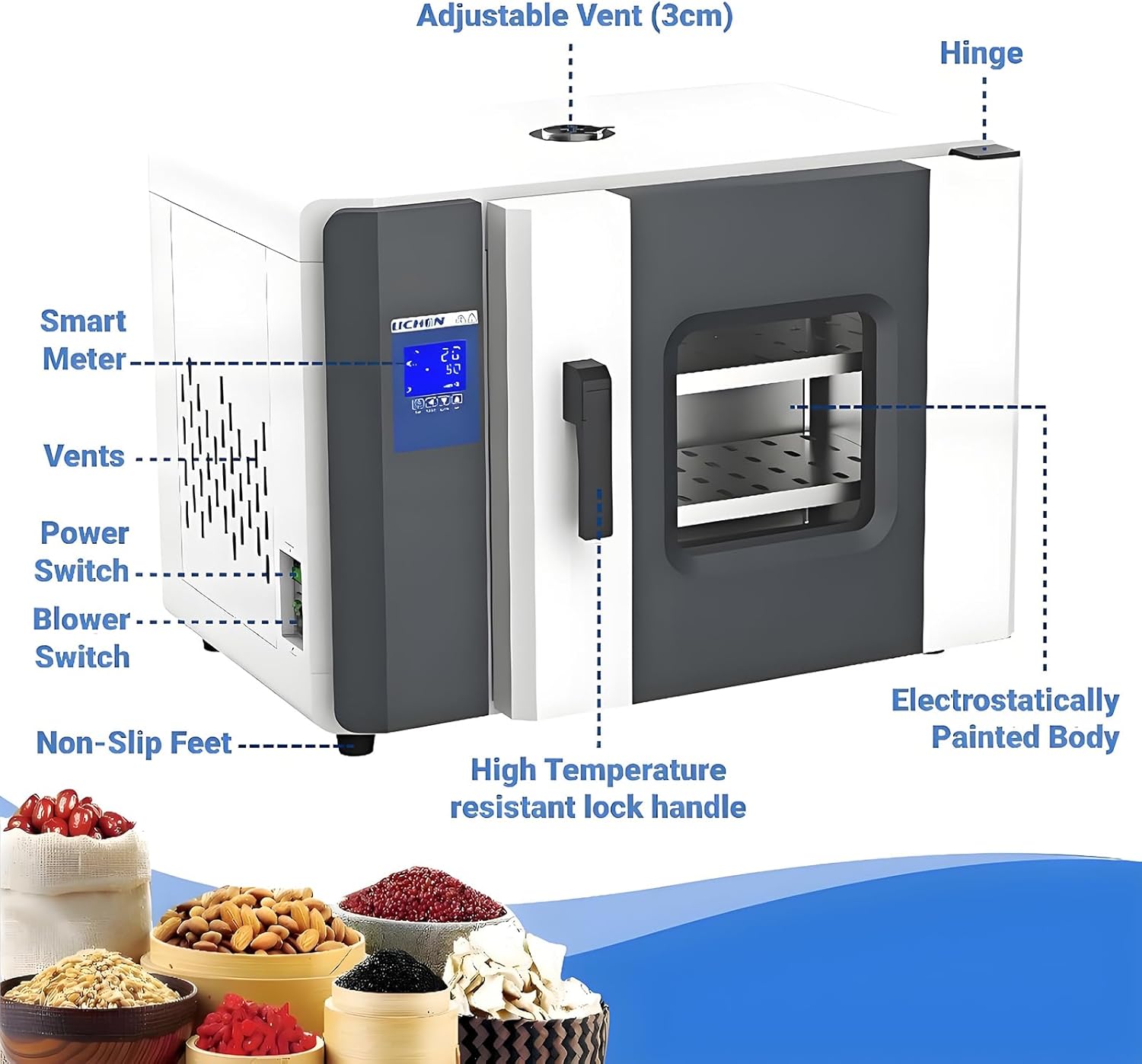 Introducing our advanced Blast Drying Box, expertly designed for efficient drying and precision temperature control in various applications. This versatile device is perfect for laboratories, food processing, and industrial use, ensuring consistent results every time. One of the standout features of our Blast Drying Box is the upgraded stainless steel heating tube, which offers a large heating area for enhanced efficiency. The built-in LCD screen provides clear visibility of both the set temperature and the current temperature, allowing you to monitor your drying process with ease. The independent fan switch is another significant advantage, as it is engineered to withstand high temperatures and corrosion, ensuring long-lasting performance. This fan can operate continuously, providing optimal airflow for even drying results. Safety is a priority with our product. The non-heat conductive, anti-scalding handle is designed for safe operation, while its adjustable elasticity ensures a secure grip. The stable door design features excellent sealing capabilities, preventing heat loss and ensuring consistent performance. Flexibility is key in any workspace, which is why our Blast Drying Box includes removable and adjustable shelves. This feature maximizes the use of space within the cabinet and includes an anti-tilt function for added stability. Equipped with a K-type sensor, our drying box provides heightened sensitivity in temperature sensing, allowing for precise control over your drying conditions. With a voltage range of 110-220V and a power output of 600W, this drying box can reach temperatures from 5 to 300°C, with a timing capability of up to 999 minutes. Its 16L capacity and four-layer design, with a partition load-bearing of 15KG, make it suitable for a variety of drying tasks. Upgrade your drying process with our reliable and efficient Blast Drying Box, designed to meet your needs while providing exceptional performance and safety.