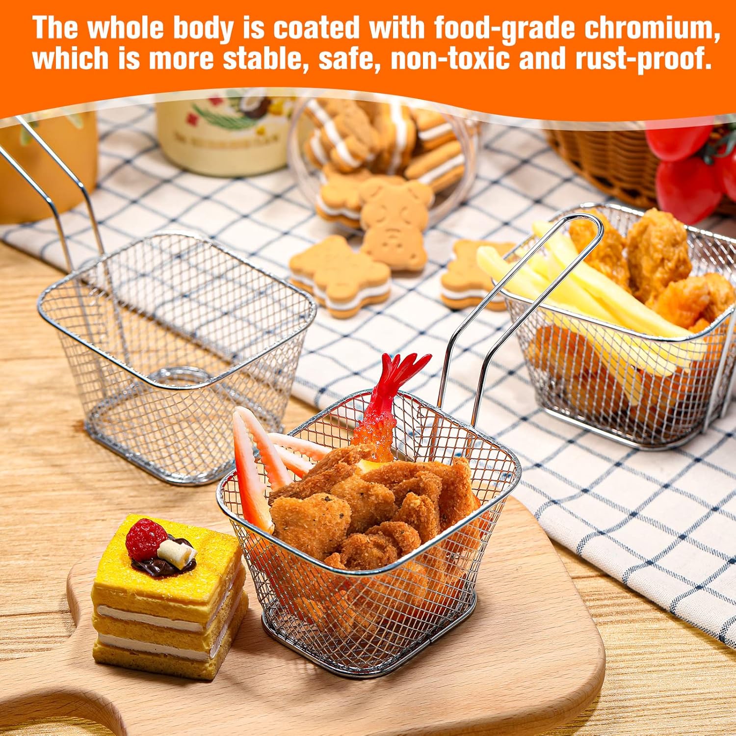 Features: Easy to clean: Due to quality material, our serving basket is not easy to leave oil in the seam, so that it can reduce your household chores, saving your time and energy. Wash after each use, dishwasher is not available. Work for different items: Having certain capacity, our waxed paper sheets are suitable for many items, such as French fries, onion rings, chicken, appetizers, vegetables, popcorn, candy and so on, just enjoy your eating time with your family simply. Specifications: Food basket: Material: chrome-plated steel Color: silver Size: 10.5 x 8.5 x 6.3 cm/ 4.13 x 3.35 x 2.48 inches Handle: 10 cm/ 3.94 inches in length Quantity: 20 pieces Paper liners: Material: paper with grease resistance layer Color: as pictures shown Size: approx. 20 x 20 cm/ 8 x 8 inches Quantity: 200 pieces Package includes: 20 x Mini square fry baskets 200 x Food paper liners Notes: Manual measurement, please allow slight errors in size. The color may exist a slight differences due to different screen displays