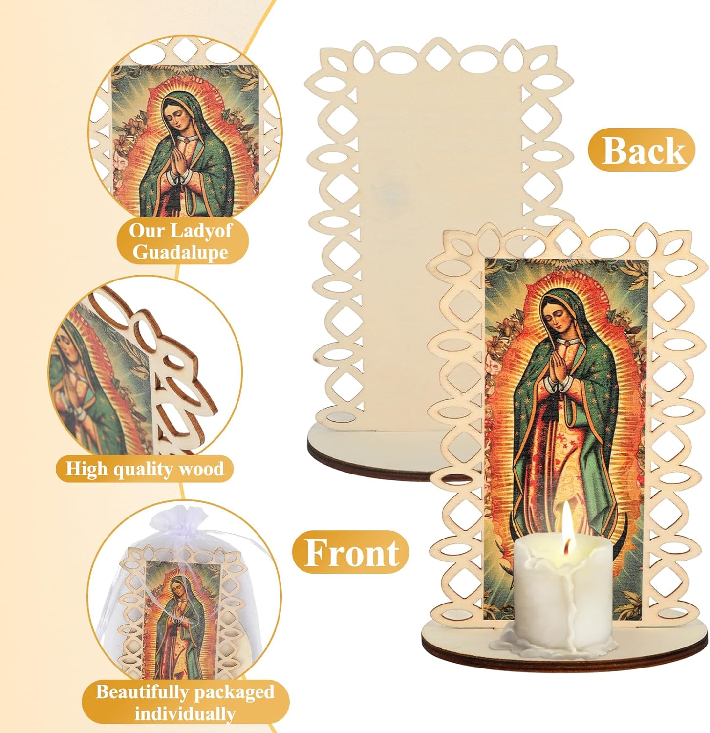 Features:Our Lady of Guadalupe wooden picture frames are excellent party gifts. Ideal for church functions, spiritual retreats, religious celebrations, or as favors for weddings, communions, or baptisms.Each frame comes with a white organza gift bag, allowing you to easily share these spiritual keepsakes with guests during baptisms, first communions, confirmations, or religious holidays. Thoughtfully designed in a convenient 6.7 x 4.5 inch size, these frames fit perfectly on desks, shelves, or walls—enhancing your home, prayer room, or church decor.Specifications:Main Material: WoodenColor: WoodSize: 11.5 x 17 cm / 4.5 x 6.7 inchesPackage includes:30 x Our Lady of Guadalupe Picture Frames30 x Organza BagsNotes:Manual measurement, please allow slight errors on size.The color may exist a slight difference due to different screen displays.
