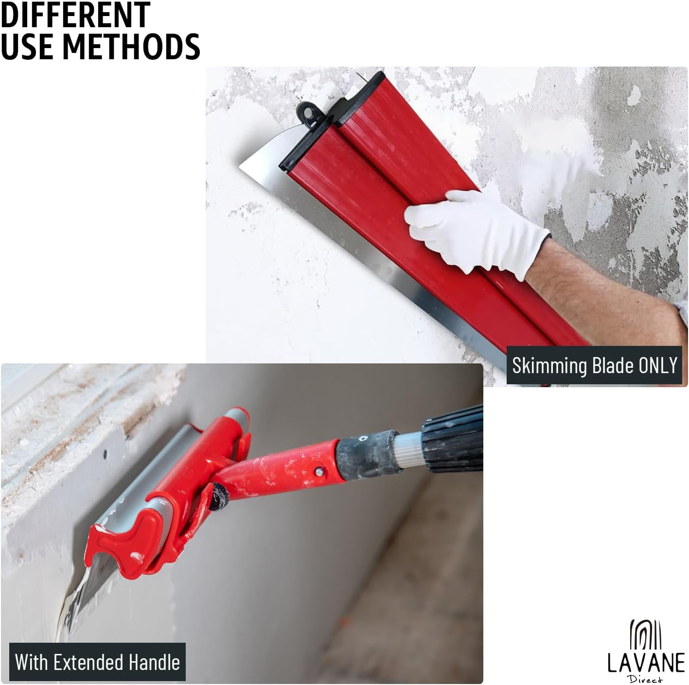 Semi-circular Blade -The blade remains rigid while staying lightweight, offering excellent strength and impact resistance. Non-slip Ergonomic Grip -With anti-slip patterns on both sides ,makes you handle the skimming blade comfortable and effortless. Easy to Clean -Made of stainless steel material and composite end caps, easy to wash with water after finishing the wall smooth. Multiple Applications -Our stainless-steel putty taping spatula knife can be easily applied for filler, paint, plaster, putty, scraping,caulk, and wallpaper removal or sealant, suitable for various construction sites with high flatness requirements. Specification -Blade Material: Stainless Steel; -Housing Material: Aluminum;