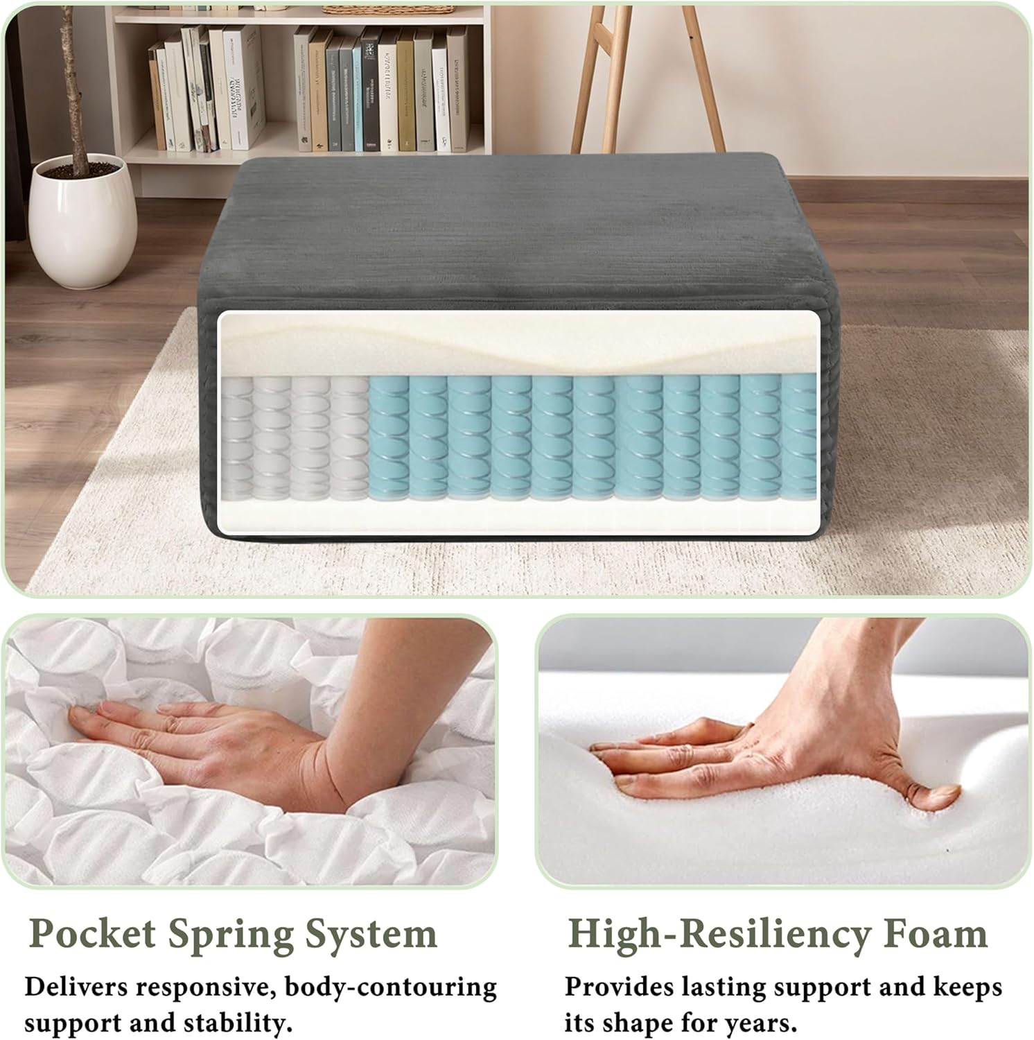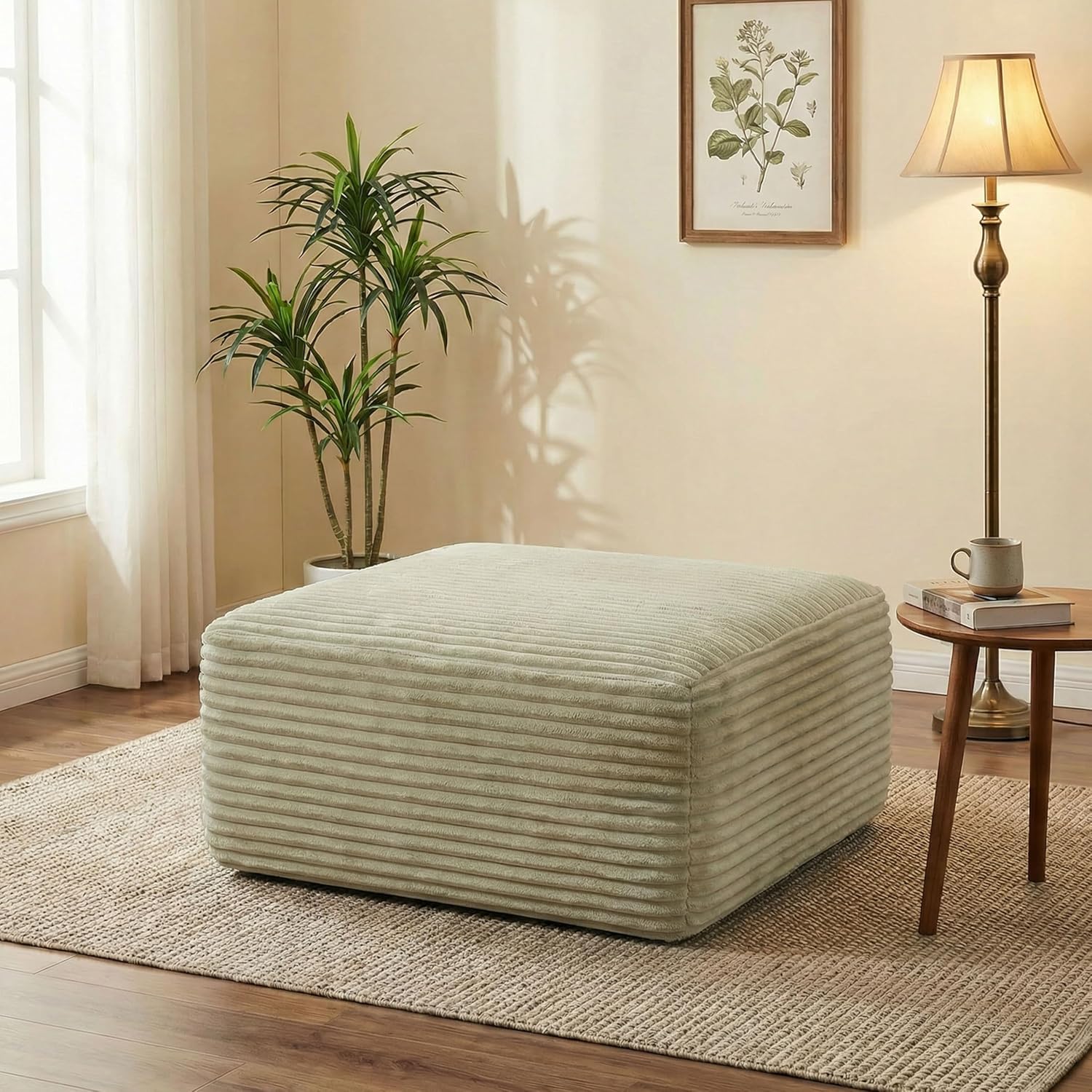 Elevate your home comfort and versatility with POEM PANDA Boneless Corduroy Ottoman—the 4-in-1 furniture hero your space has been waiting for! After a long workday, kick your feet up on it as a sofa footstool and sink into cozy relaxation while binge-watching your favorite show. When guests drop by unexpectedly, as a single seat—no need to haul out bulky folding chairs. Host a casual tea time? Place a tray on top, and it becomes a chic for snacks, teacups, and your go-to magazines. Mornings rush? Use it as a bedside bench to sit and slip on shoes without fumbling for a chair. Whether it’s a living room lounge session, a bedroom morning routine, or a small apartment gathering, this multi-use ottoman turns every corner into a cozy, functional spot. Why It’s a Must-Have? 4-in-1 magic: ottoman, single seat, small coffee table, bedside bench; Premium corduroy—soft yet tough against wear and tear; High-density foam and individually pocketed springs—sturdy support that won’t flatten over time.