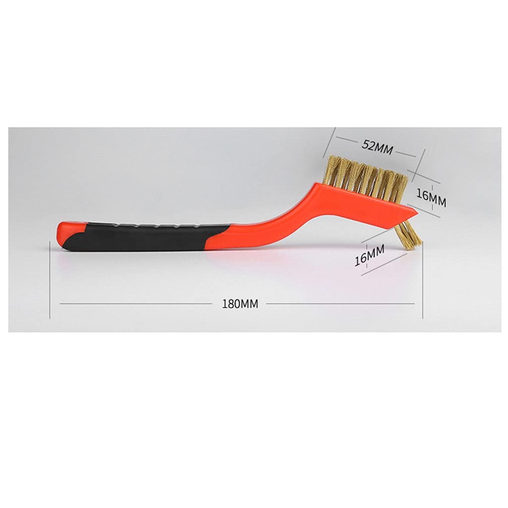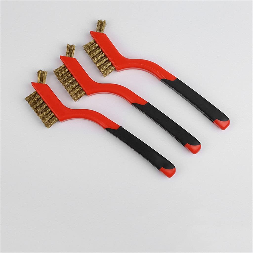 The stainless steel brush is tightly wear-resistant, moderate in hardness, does not fade, does not tie hands, and has high cleaning efficiency. The brush wire is strong and tough.The hardness of the copper wire brush is moderate, and the wavy wire is tightly designed, which increases the surface area and effectively improves work efficiency.Nylon brushes are relatively soft, they are strong enough to brush, and they are not easy to damage the utensils. They are not only but also not easy to deform.The evenly curved lines on the brush handle make it comfortable to hold and use, and reduce fatigue. There is a small hole design at the end that can be hung and stored.It is used for cleaning, derusting, and removing impurities of various materials, which can improve the quality of metal and stone, and is an important part of the machining process.Package Includes:3 x brushNotes:1. Measurement of the item lying on the table may cause slight difference.2. The real color of the item may be slightly different from the pictures shown on website caused by many factors such as brightness of your monitor and light brightness when photo taking.Thank you for your understanding!