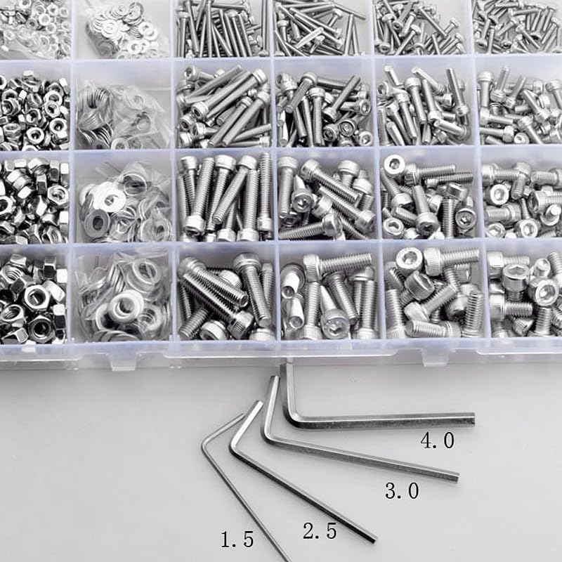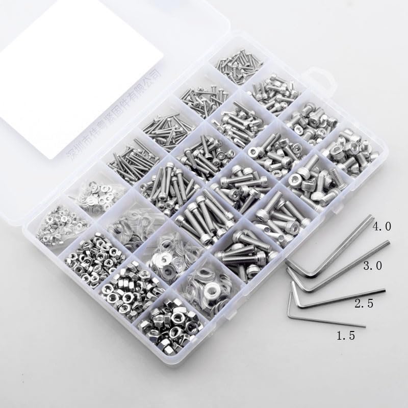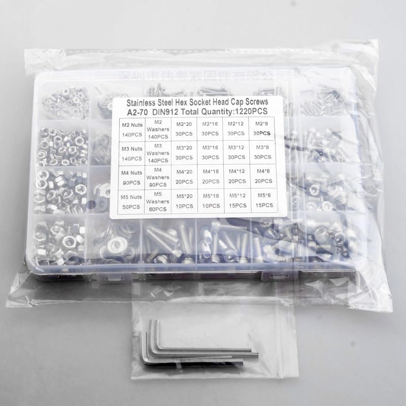 Cup Head Allen Bolt Hex Socket Round Cap Head Screw And Nut Assortment Kit Set M2 M3 M4 304 Stainless Steel Set 1220 pcsProduct Parameters Name: Cup Head Allen Bolt Hex And Nut Combination SetMaterials: 304 Stainless SteelInternationl Standard: GBSurface Treatment: otherQuanity: 1220 PcsM2*8 30pcs M3*8 30pcs M4*8 20pcs M5*8 15pcsM2*12 30pcs M3*12 30pcs M4*12 20pcs M5*8 15pcs M2*16 30pcs M3*16 30pcs M4*16 20pcs M5*12 15pcsM2*20 30pcs M3*20 30pcs M4*20 20pcs M5*16 10pcsM2Nuts 140pcs M3 Nuts 140pcs M4 Nuts 90pcs M5*20 10pcsM2 Washers 140pcs M3 Washers 140pcs M4 Washers 90pcs M5 Washers 60pcsProduct photograph ATTENTION PLEASE:1,Way to communicate : Please if there is regarding the item. respond your question or in 24hours(because of the jet lag) 2,Transportation problem :This is a multinational trade, such as transport processes that cause inconvenience, please understand.3,Photo & Size : Please note, that the pictures are enlarged slightly for your convenience. Make sure to notice the actual size of the merchandise, as it may be smaller than the representing photo.4,Measurement error : Please allow a small measurement error.:3,We wish the paska arrives to you sooner, but international mail is highly depended on the custom and local post office, so don't receive your item, please connact us, thank you for you kindly understanding.