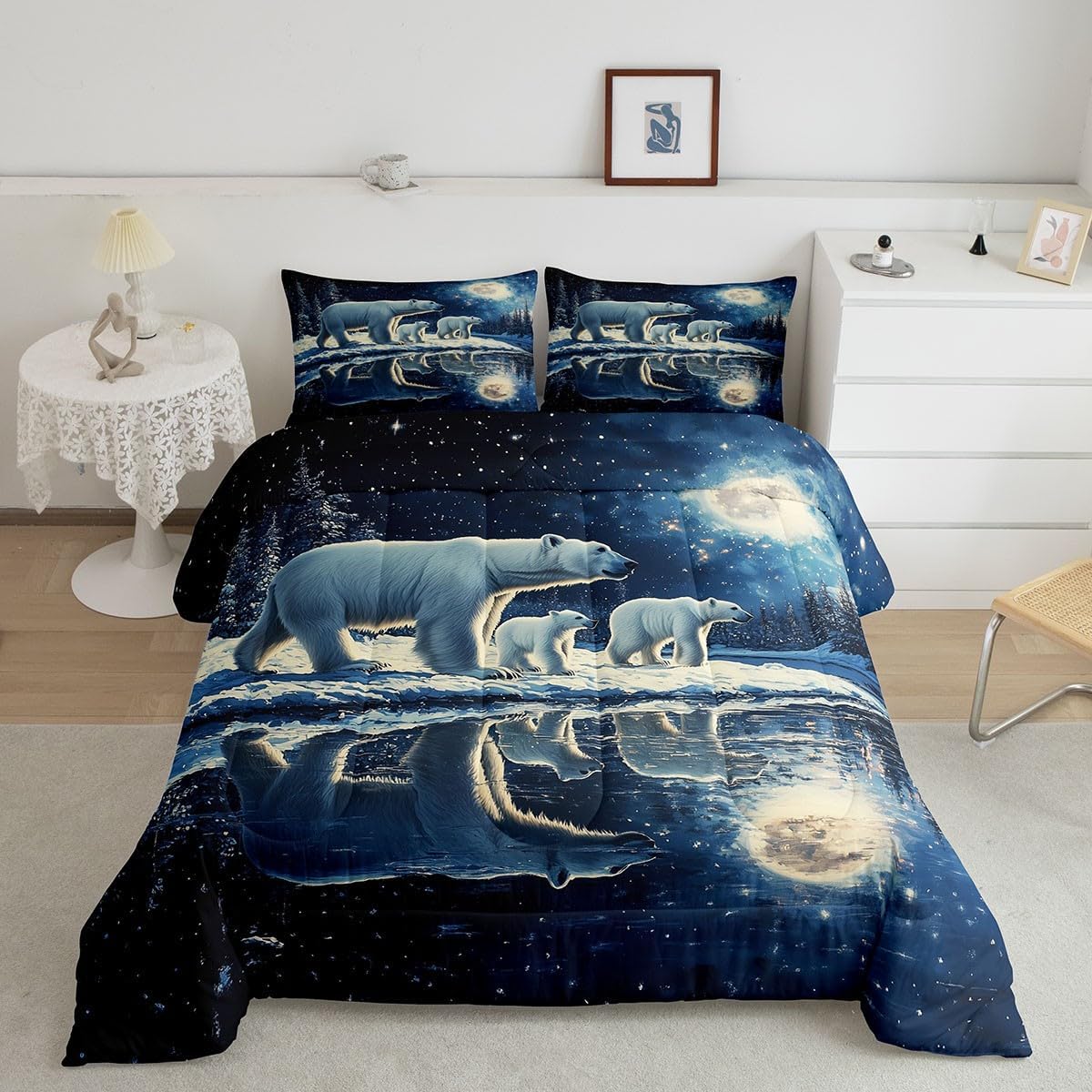 Package Include: Comforter and Pillowcase. Makeover your bedrooms every season with our Comforter sets. Perfect item for your room, girls boys youth room, master bedroom. Size Information: Toddler size down comforter 42"W x 58"L and 1 pillow case 30"W x 20"L. 2pcs with 1 Bed Comforter and 1 Pillowcases in A Bag Twin size down comforter 68" W x 90" L and 1 pillow case 30" W x 20" L. 2pcs with 1 Bed Comforter and 1 Pillowcases in A Bag Full size down comforter 79" W x 90" L and 2 pillow cases 30" W x 20" L. 3pcs with 1 Bed Comforter and 2 Pillowcases in A Bag Queen size down comforter 90" W x 90" L and 2 pillow cases 30" W x 20" L. 3pcs with 1 Bed Comforter and 2 Pillowcases in A Bag King size down comforter 104" W x 90"" L and 2 pillow cases 36" W x 20" L. 3pcs with 1 Bed Comforter and 2 Pillowcases in A Bag Useful and practical A luxurious product for homes, dorm rooms, hotels, guest rooms. Practical to use for being polyester, feels like cotton which is Super Soft and Breathable. No chemicals used, No dye substance harming the health of you or your family. Unique design: Vivid Colors won't fade thanks to new 3D digital printing methods. These unique designs match well with various color palettes of your rugs, curtains, headboard, furniture, and all other decor accessories. Personalized: As manufacturers of digital printed home textiles, we follow current trends and bring you the latest home fashion.