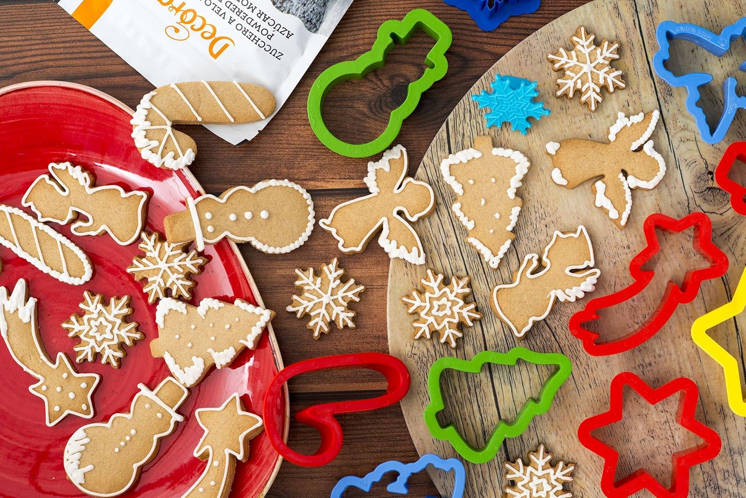 Plastic cutter Perfect for making themed shapes with biscuit dough, sugar paste and various doughs. Size 7 cm. Shapes contained in the kit: daddy, candy dog, star, comet star, Christmas tree, snowman.