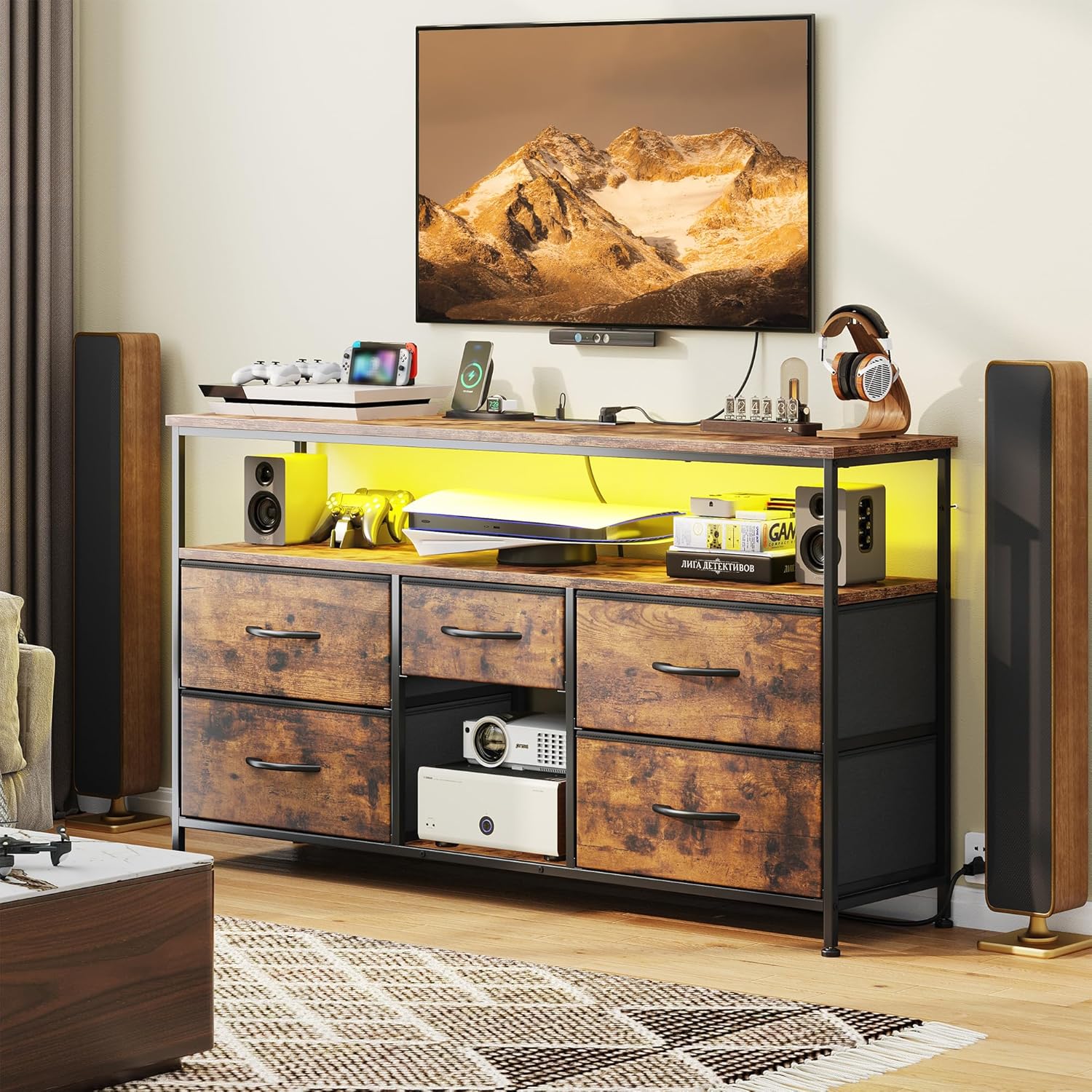 | Additional Features | Adjustable Feet, Power Outlets, LED Light Strips, Space Saving, Suitable for 50" TV |