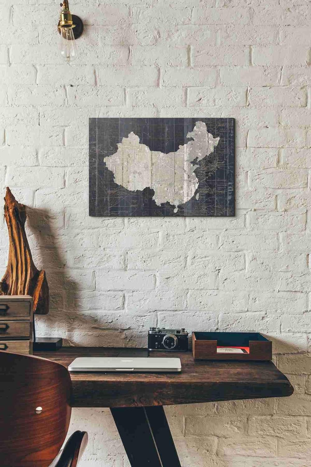 "Old World Map China" by Wild Apple Portfolio. Featuring a vintage world map using metallic colors on weathered wood textures.