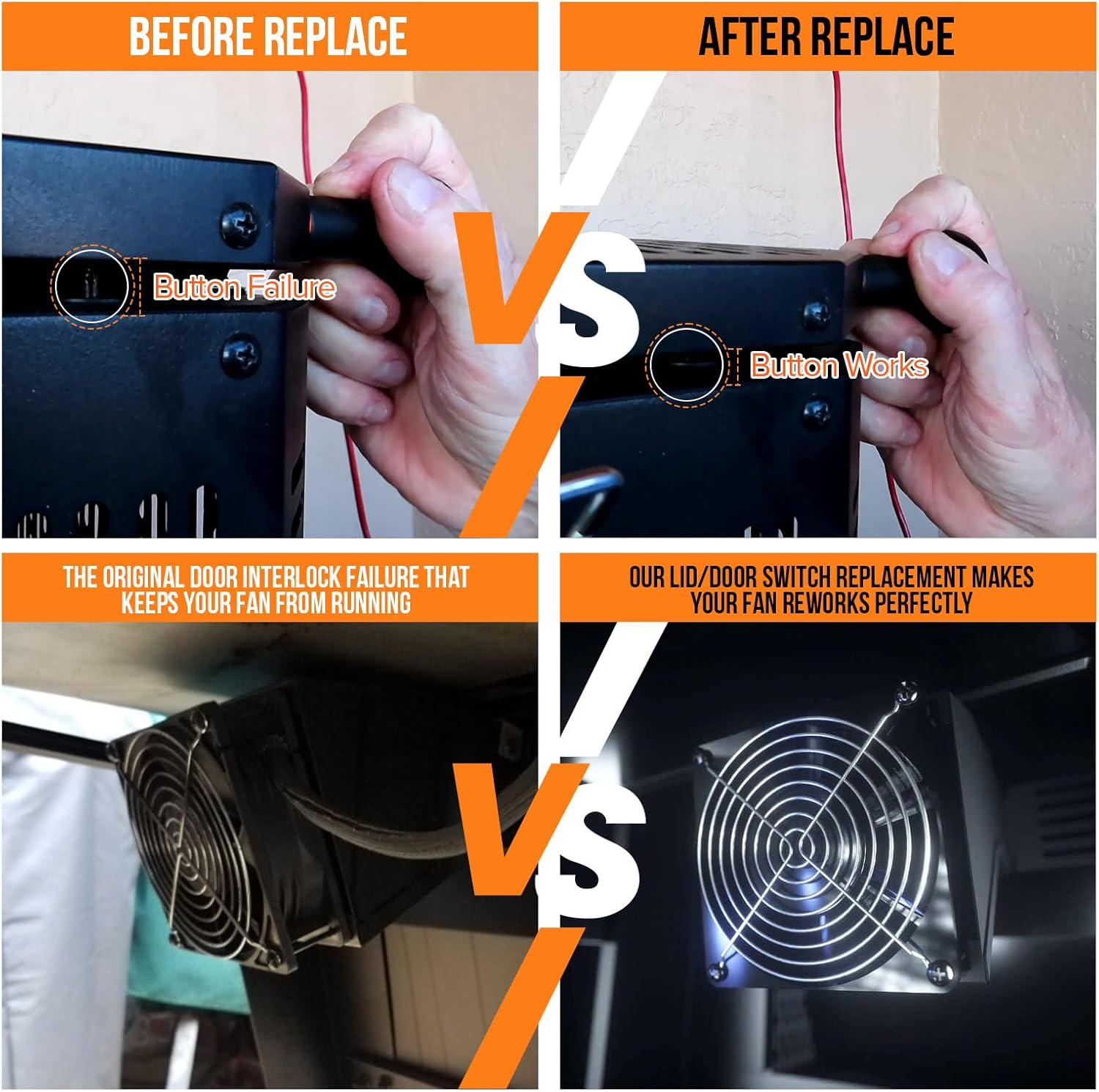 Replacement hopper lid/door switch kit 9904190041, replacement fan Kit 9904190040 and electric wire kit 9904190045 for Masterbuilt Gravity Series 560 800 1050 digital charcoal grill & smokers parts. Fits MB20040122, MB20040220, MB20040221, MB20041020, MB20041220, MB20041320