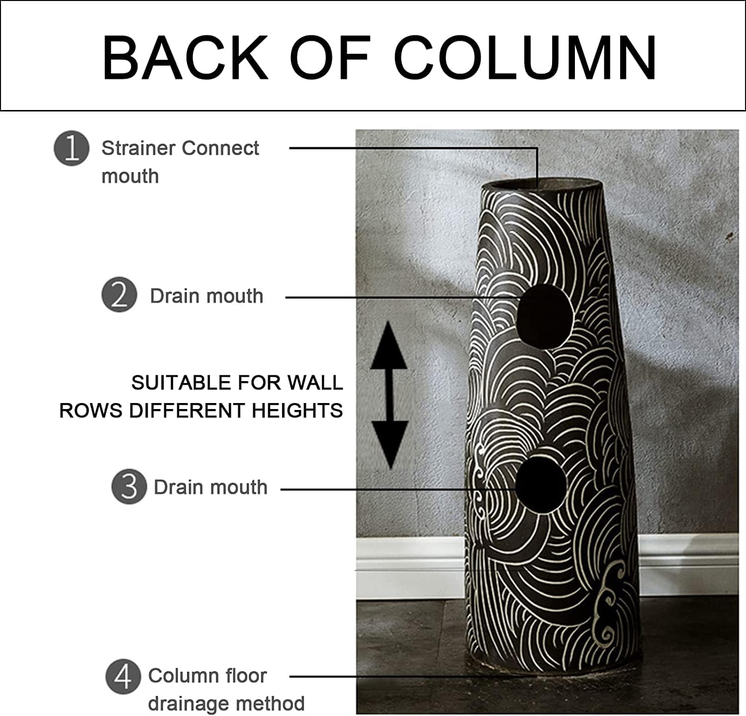 This Pedestal Sink catches your attention especially thanks to its really unique design. ? The mix of romantic and elegant give this a look, make Home bathroom or Business Hotel Restaurant as charming it's practical.1. Sleek Elegant Design, Smooth Lines, Curved Corners, Safer for Use. 2. Modern Simplicity , Wear-resistant dirt-resistant, Stable durable, Not Easy Sscratch. 3. High Temperature Integral Molding, Seamless, No Leakage, Longer Service Life. - Type:Freestanding Sinks Material:Kaolin Clay Ceramic Overflow: Drain Location:Center Size :See detailed size chart Delicate solid ceramic with crystalline glaze. Premium quality construction: maintain clean. Package: Column Basin * 1 Faucet Floor drain Angle valve 2 pipe 1〖 Customer Service〗 We are committed providing you the highest service addressing any concerns issues promptly ensure satisfaction. please contact us by email, all questions will be answered within 12 hours. Look forward working you.