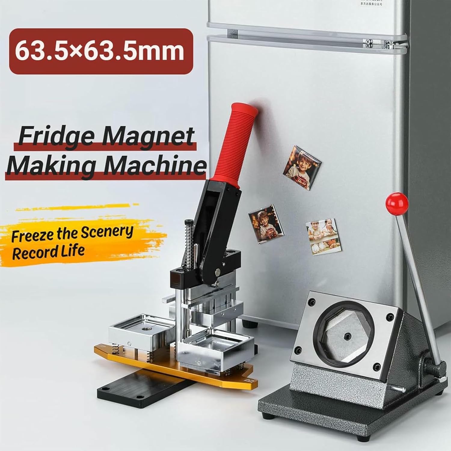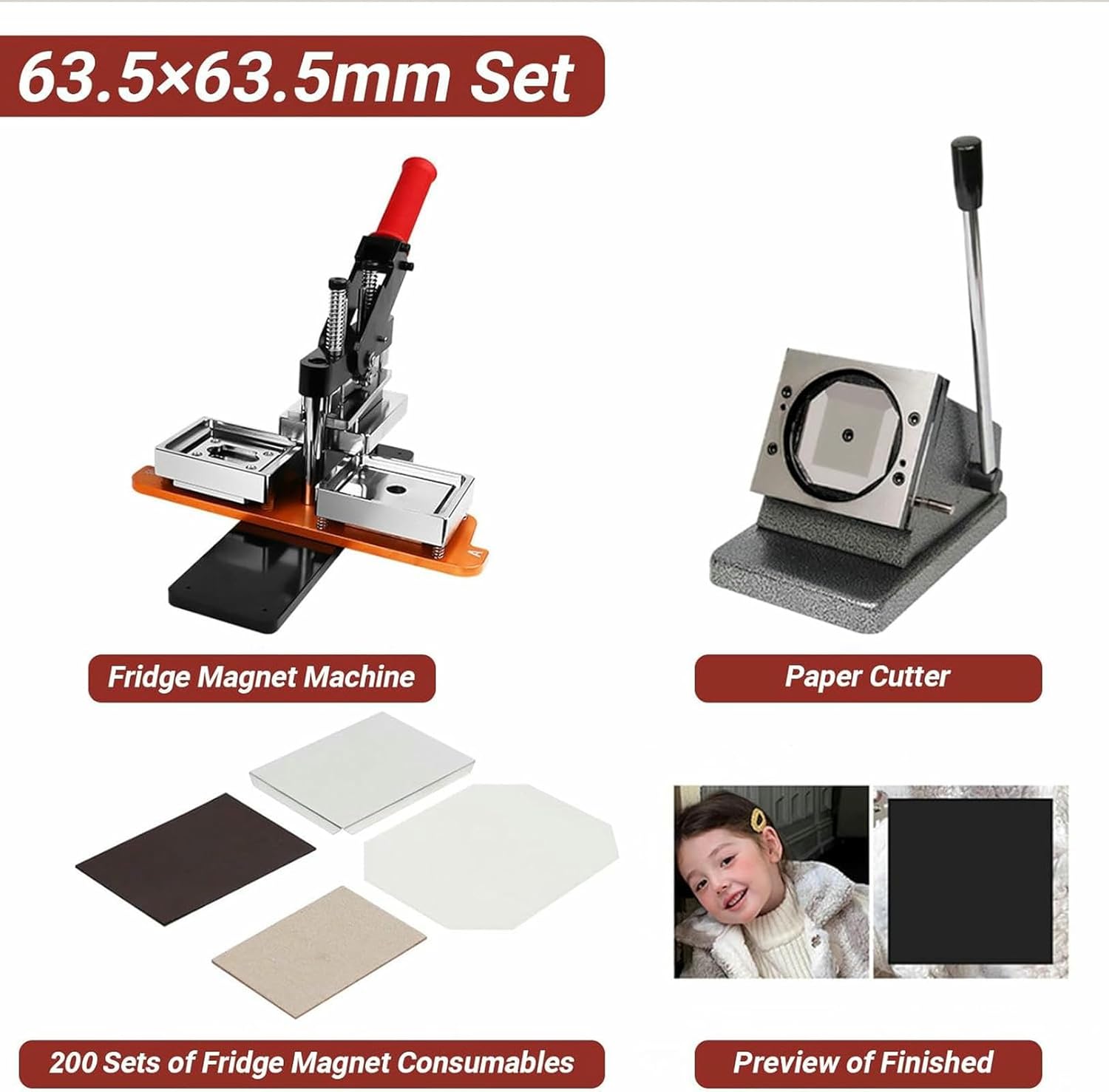 Why always put up with limited styles in stores?Use our DIY fridge magnet maker to turn your child's doodles, travel photos and even coffee cup labels into unique magnetic works of art! 3 minutes of customization, lifelong collection - your fridge should tell your story. Our product is easy to use, durable and reliable.♣Product parameters:Name: DIY refrigerator magnet making machineProduct color: blackProduct material: alloyProcess: electroplating, injection molding, stampingSpecifications:1. 50*50 set:Main unit packaging size: 41*17*30Main unit gross weight: 9KGCutter + consumables packaging size: 32*26*26Cutter + consumables gross weight: 13KG2. 63.5*63.5 set:Main unit packaging size: 41*17*30Main unit gross weight: 12KGCutter + consumables packaging size: 32*26*26Cutter + consumables gross weight: 13KG3. 53*80 set:Main unit packaging size: 41*17*30Main unit gross weight: 13KGCutter + consumables packaging size: 32*26*26Cutter + consumables gross weight: 14KG4. 65*90 Set:Main unit packaging size: 41*17*30Main unit gross weight: 14KGCutter + consumables packaging size: 32*26*26Cutter + consumables gross weight: 14KG♣ Packing list:x 1 Main unitx 1 Square cutterx 200 Fridge magnet consumables (cardboard + consumables)♣ Note:1. Photo paper cannot exceed 157GSM.2. The face of the paper cutter is coated with black oil to prevent rust. Before use, cut the area several times with waste paper to clean it.