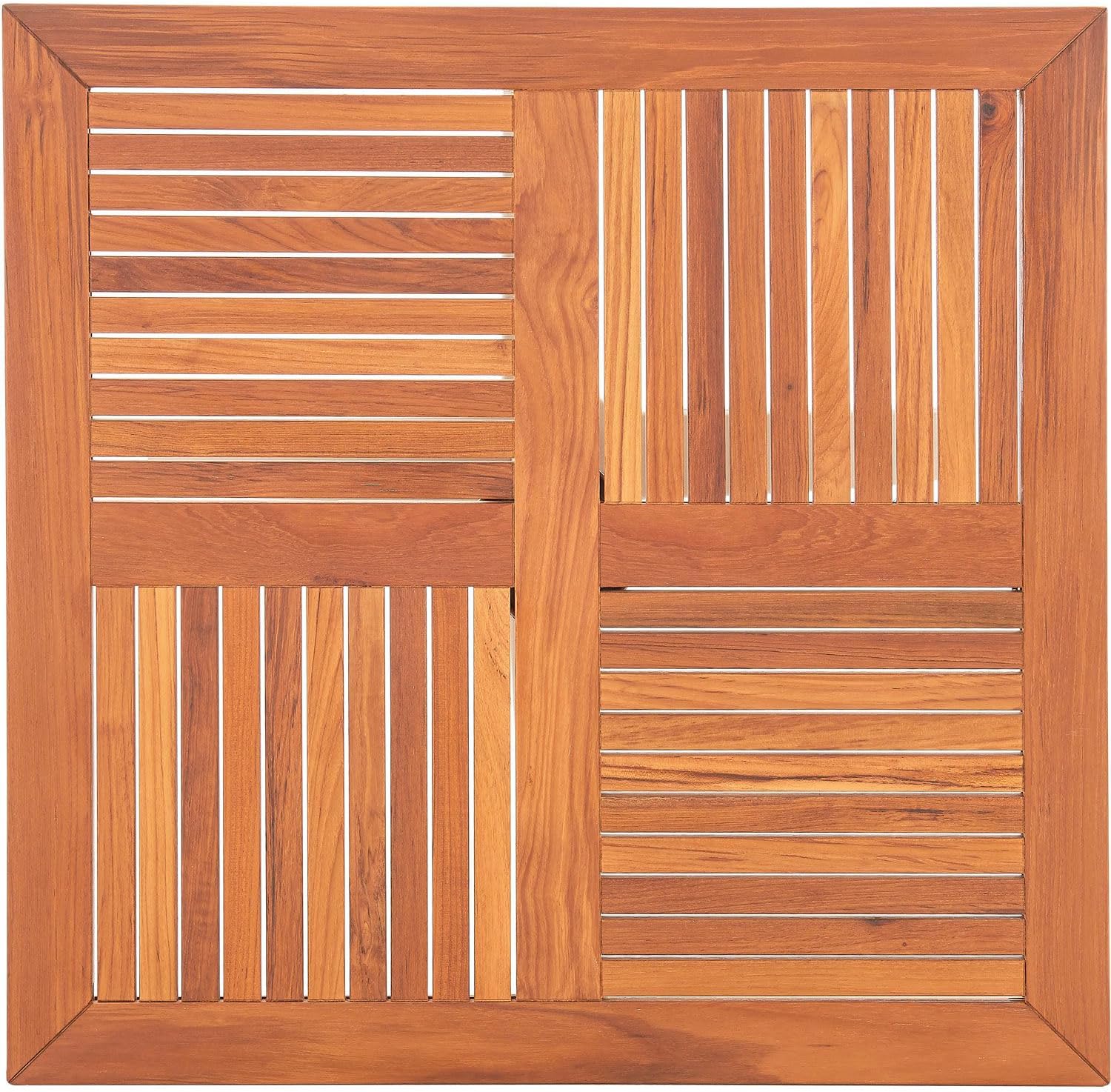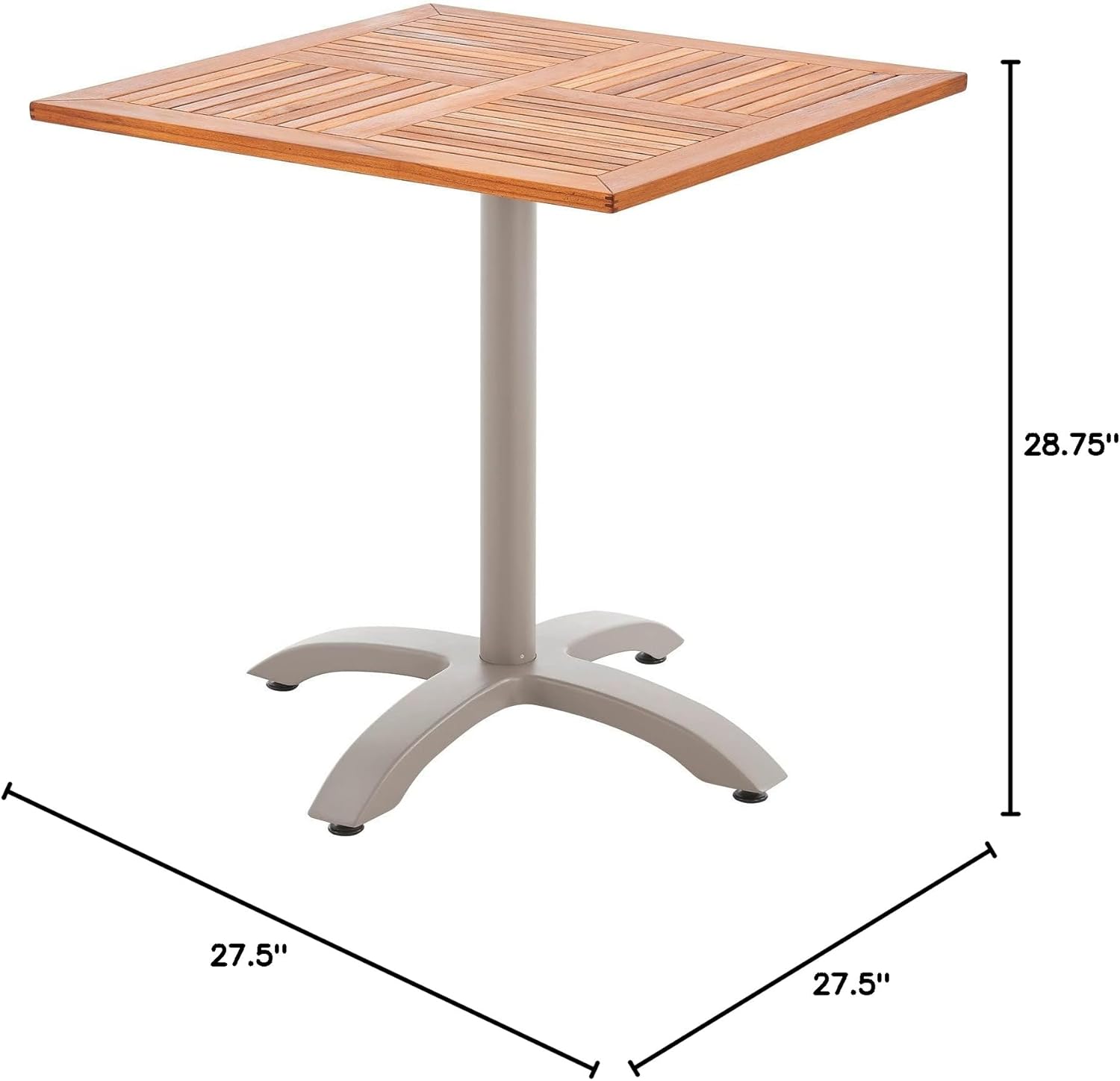The next time a refreshing drink is served at a spot in the open-air, place it on the Global Industrial Outdoor 27-1/2" Square Teakwood Café Table. The slatted teak top is stylish in appearance while the durable aluminum frame is what is expected for outdoor commercial furniture. Use it to accentuate patio furniture, outdoor cafes, and virtually any outside space that needs a functional yet stylish table. 1-Year Limited Warranty., Lot of 1