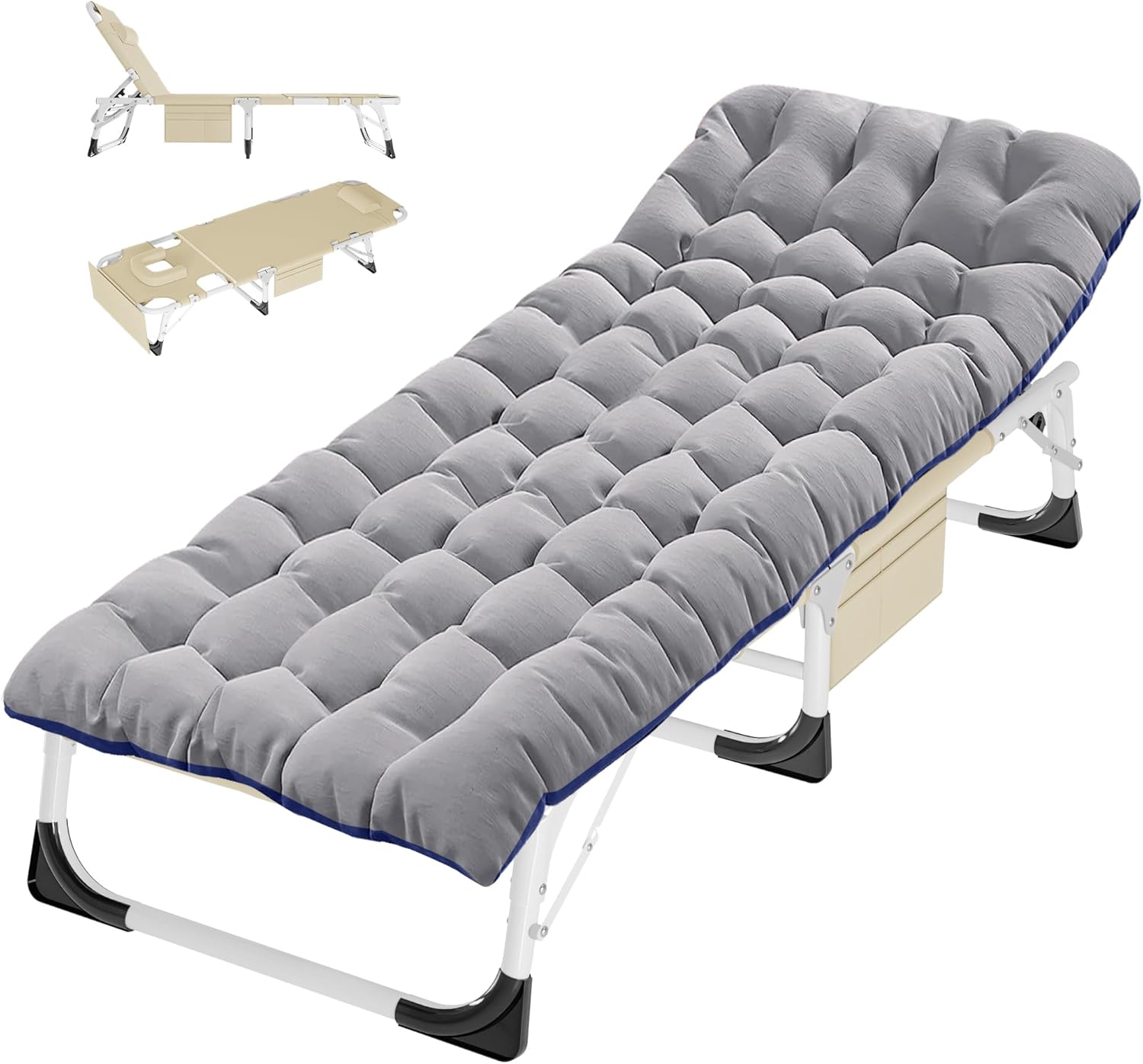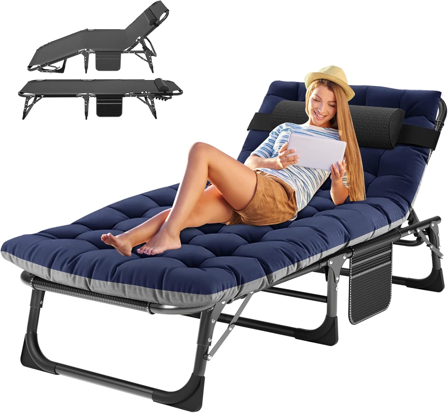 Experience ultimate relaxation during your outdoor adventures with the 11 Positions Camping Cot. This versatile and portable sleeping cot is designed for adults who enjoy camping, beach outings, or simply lounging in the backyard.The Camping Cot is crafted for convenience and ease of use. Its lightweight and foldable design makes it effortless to transport, allowing you to take it anywhere your adventures lead. Set it up quickly at the campsite or unfold it in your garden for a cozy retreat. This folding lounge chair also features a plush pillow for added support, ensuring that you relax in style.Imagine spending a sunny day at the beach, reclining comfortably on your cot, soaking in the sun while reading your favorite book. Or picture a serene camping trip where you can enjoy the great outdoors without sacrificing comfort. This cot is not just a piece of camping gear; it's an essential companion for anyone who values relaxation and convenience during their escapes.Built with durable materials, the Camping Cot is designed to withstand various outdoor conditions. Its sturdy construction provides reliable support, making it suitable for both casual users and outdoor enthusiasts. Elevate your leisure time with a product that combines functionality, comfort, and portability.