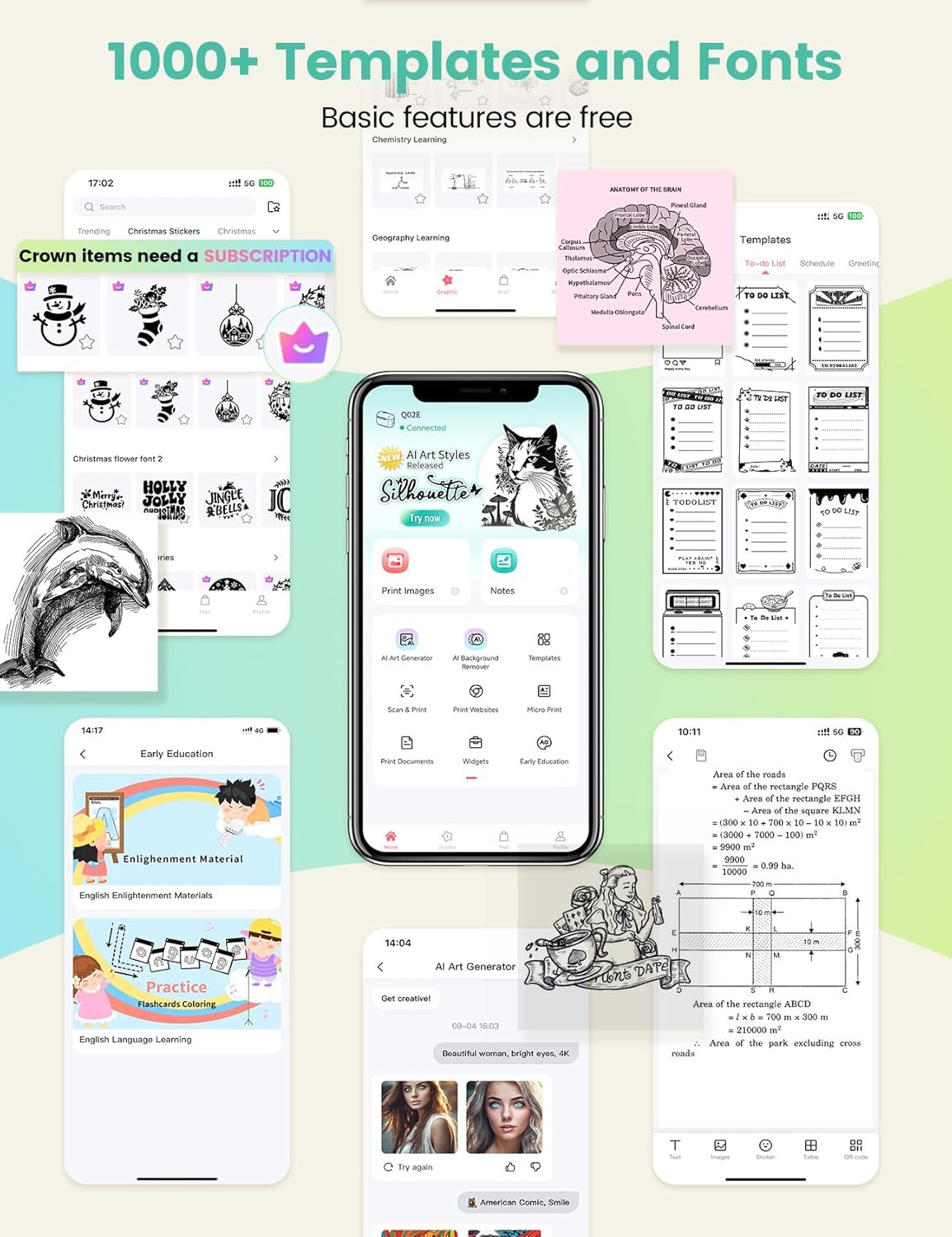 All-In-One Mini Printer Package : The Q02E mini printer arrives fully equipped with a sticker printer, combo with with Thermal Paper(3 White + 3 Clear) of 50mm sample thermal sticker paper (50mm x 3.5m), a USB charging cable, and a user manual. This package allows you to design personalized labels, pictures, and texts, and to cut them to your preferred shape or size using scissors, making labeling both efficient and economical. (The sample paper is pre-installed for your immediate printing enjoyment)