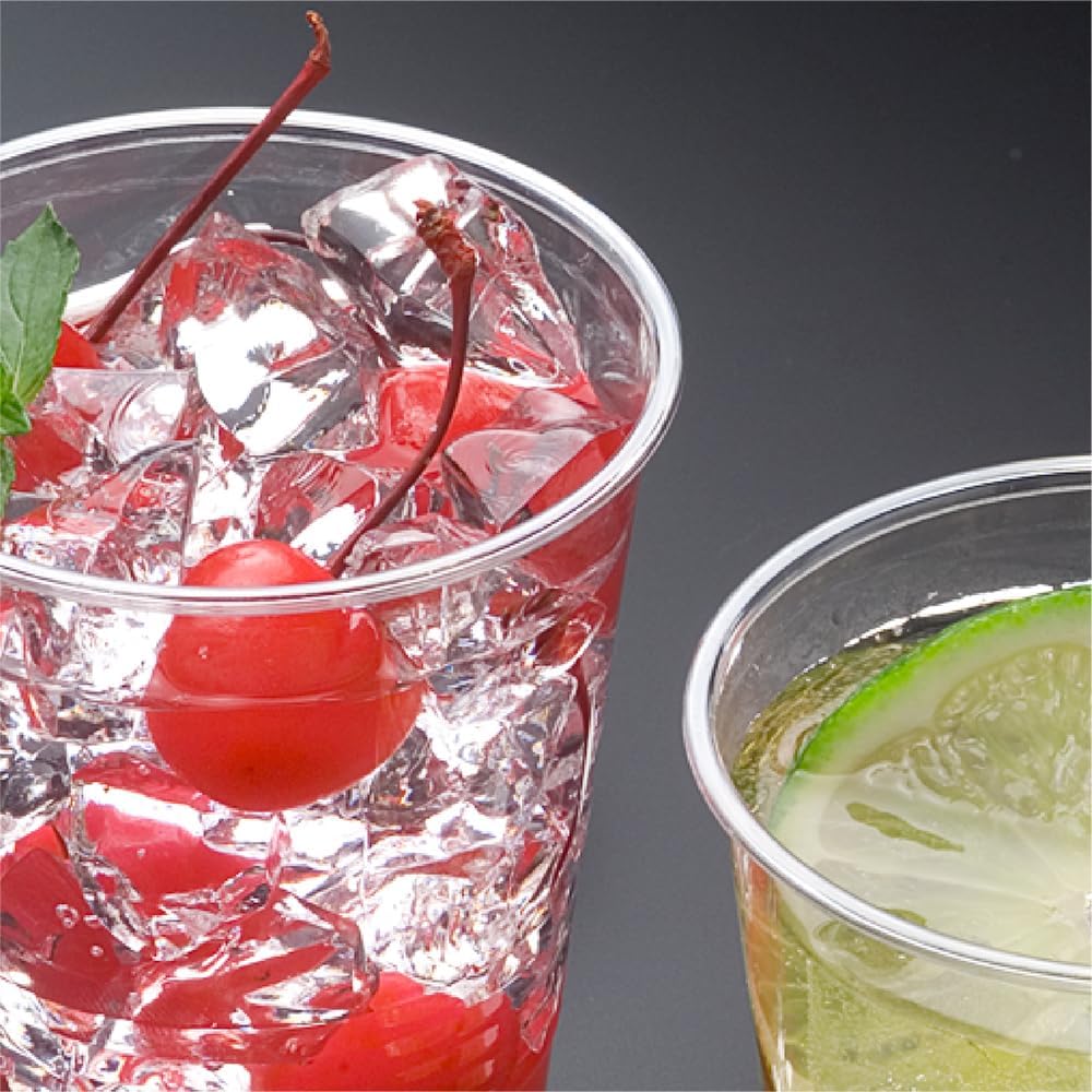 Disposable plastic cups 9.1 fl oz (270 ml) for juice or cold tea. Made of PET resin that is safe for drinks.