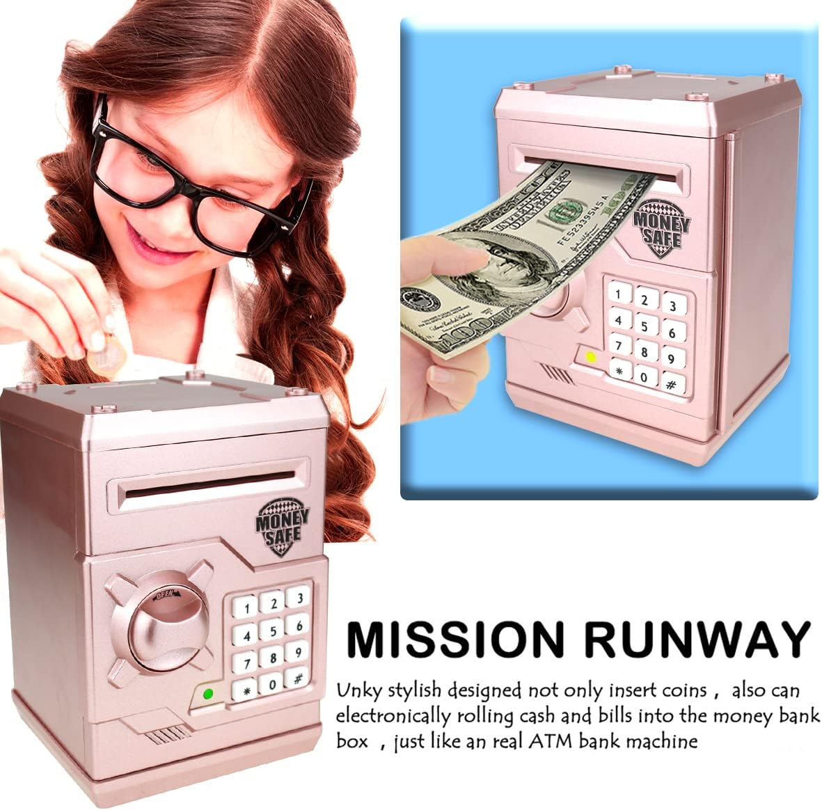 It’s a fun and educational money saving bank, devolop your kids money saving concept, cultivate the good habit of saving. Exquisite design, the appearance of cute, is the best choice for gift