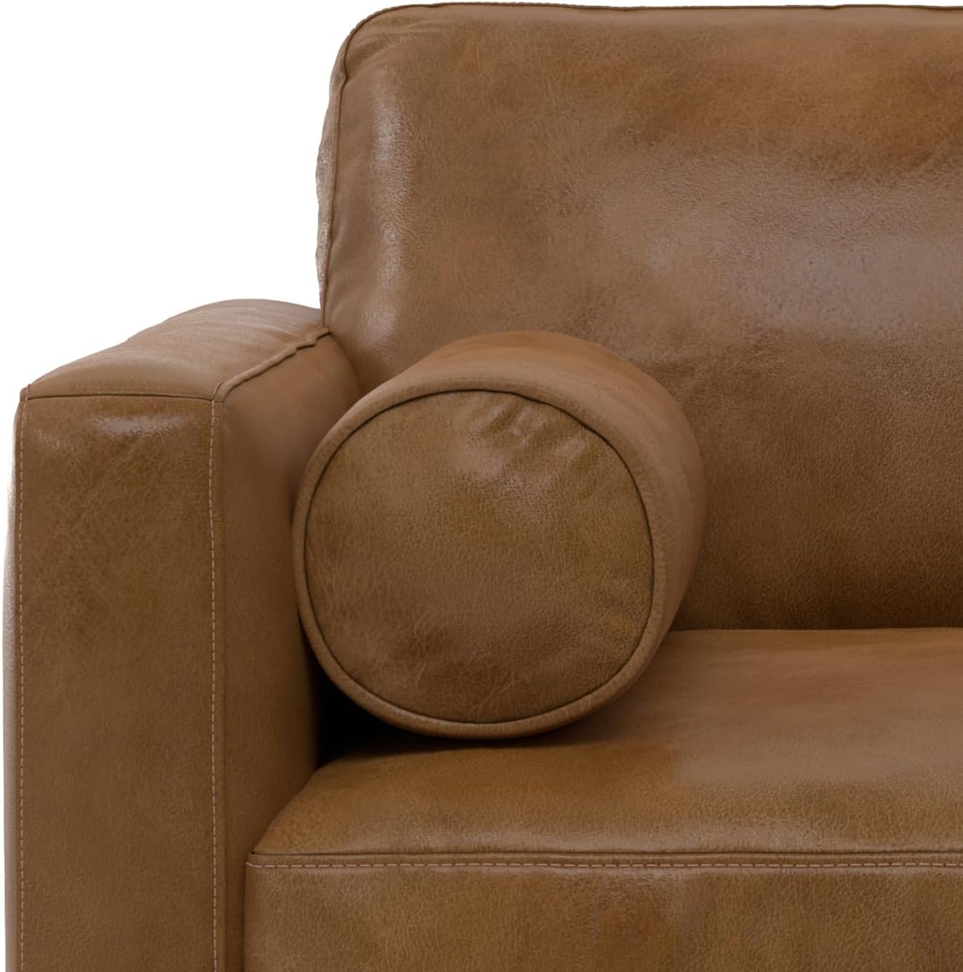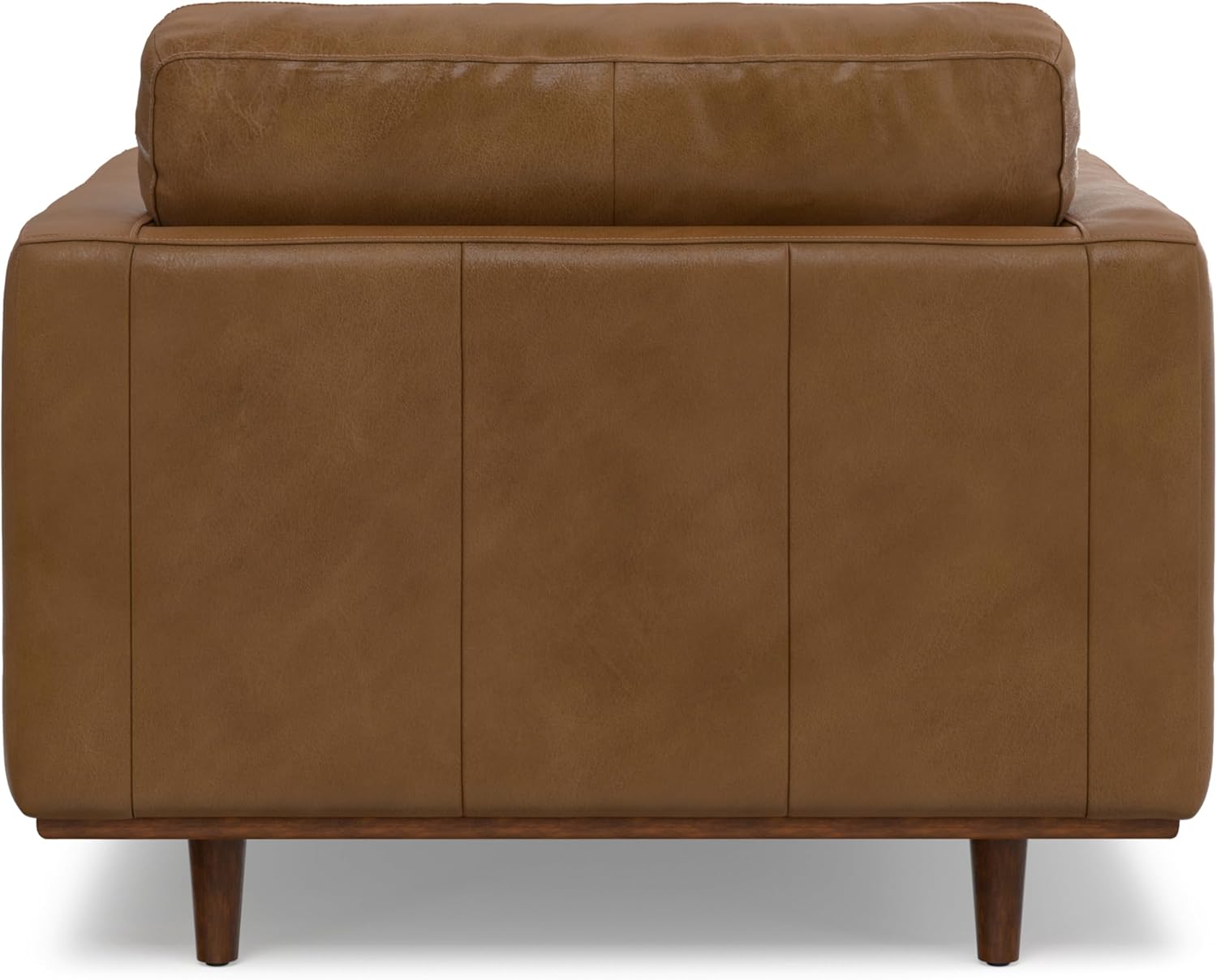 Bring timeless mid-century style and comfort into your home with the Morrison Leather Arm Chair. Measuring 42 inches wide and 34 inches high, this handcrafted accent chair is upholstered in sustainable semi-aniline Kind Leather that delivers luxurious softness and durability. The single seat cushion features a high-density foam core wrapped in feathers for lasting comfort, while the slightly reclined back and bolster pillows offer a cozy spot to unwind. Built on a kiln-dried solid and engineered wood frame with corner-blocked joinery, webbing, and sinuous springs, this compact yet supportive armchair is designed for residential or commercial use. Solid wood legs and adjustable levelers provide stylish stability, making this versatile chair ideal for living rooms, bedrooms, or reading nooks.