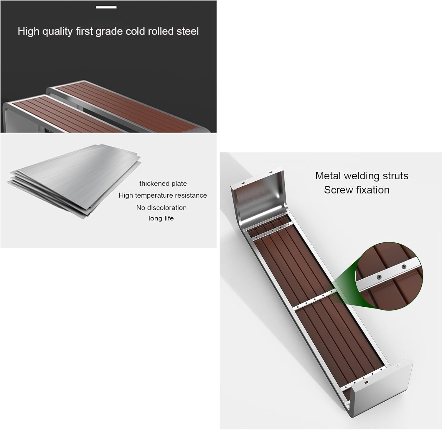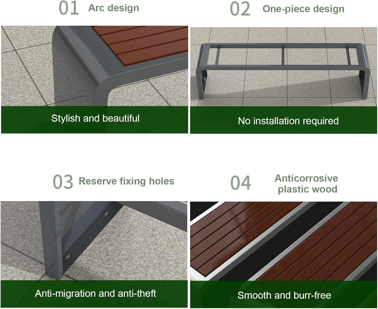 ☀☀ Outdoor Steel Bench, Garden Bench, Community, Backyard, Shopping Mall Outdoor Bench, No Fading, Strong and Weather Resistant Park Benches.☀☀ Details:☀Name: garden bench.☀Material: Steel structure + plastic wood☀ Features: waterproof, moisture-proof, anti-crack, anti-rust.☀ Style: modern and simple☀ Color: Silver, White, Gray, Black☀ Frame: metal frame☀Suitable for: outdoor, park, balcony, etc.☀ Size: 100cm/39.3in, 120cm/47.2in, 150cm/59in☀ Quantity: 1☀ Installation: No installation required☀ Seat: Suitable for 1/2/3 people☀☀Package included:1 x metal garden bench☀☀Please note:1. Although we display the most accurate color possible, there are likely to be variations in color due to differences in computer monitors.2. Manual measurement, the product size will have an error of 1-3cm.