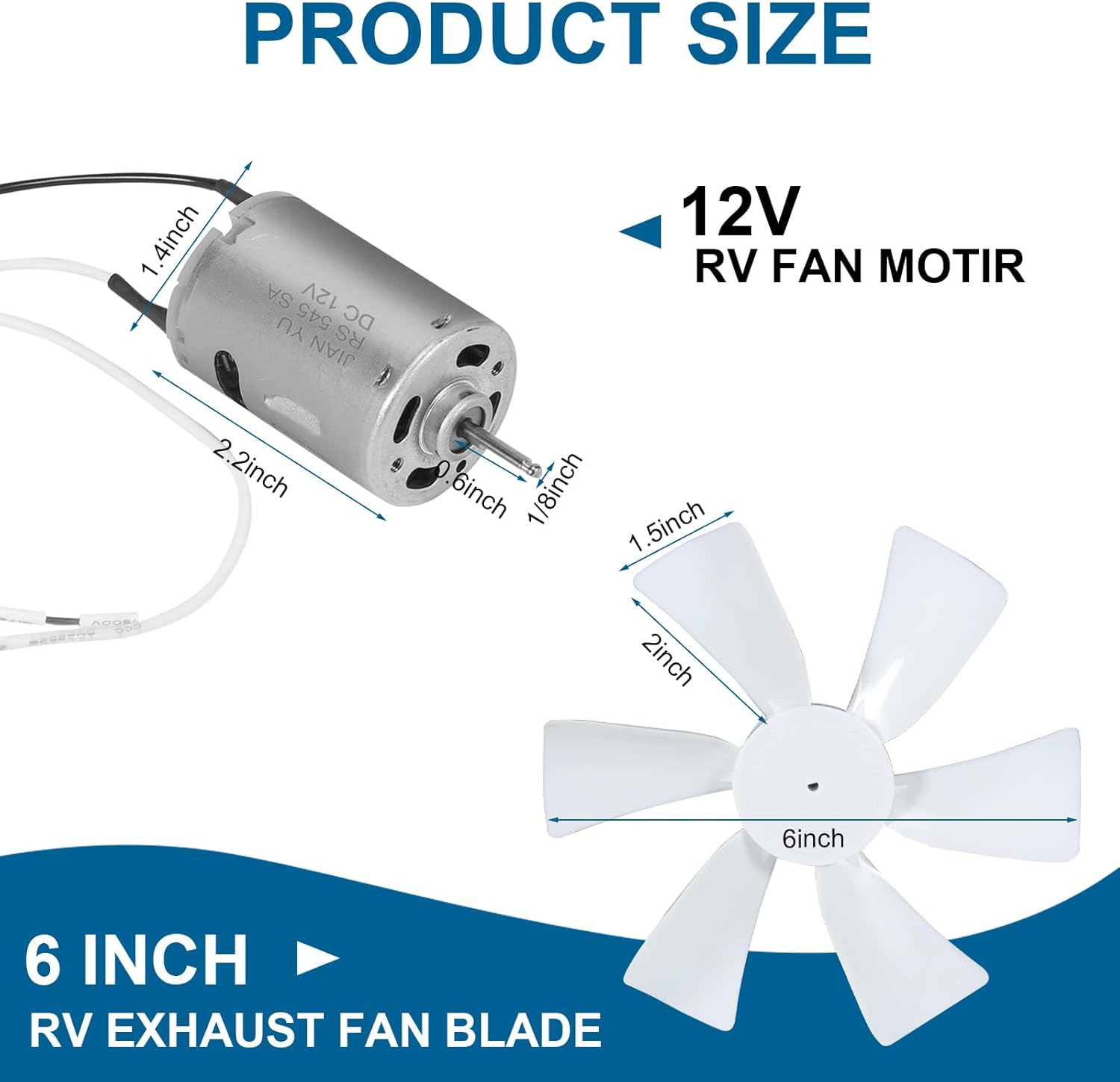 SVNR RV Roof Vent Cover Replacement Kit (3-Pack) & 6 inches RV Vent Fan Blade Replacement 1PCS with 12V D-Shaft