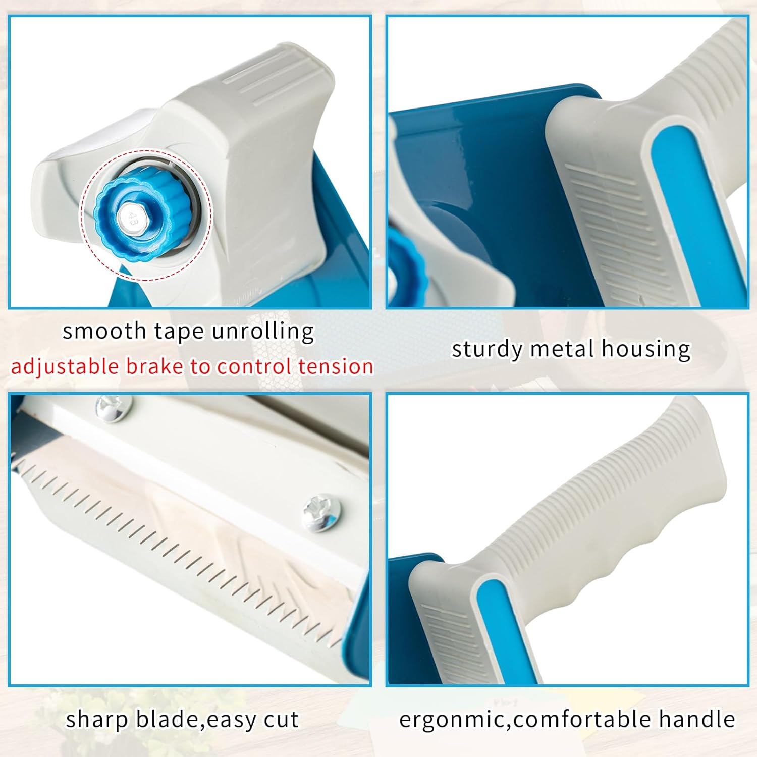 • Generous Packaging: each pack comes with 4 pieces of packaging tape dispensers, which means you can have a spare on hand; This ensures that you can keep working without interruption, even if one of them breaks accidentally; At the same time you can put them in different places, convenient for you to apply